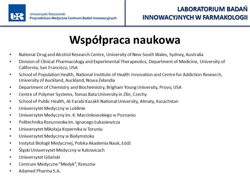 LABORATORIUM BADAŃ INNOWACYJNYCH W FARMAKOLOGII