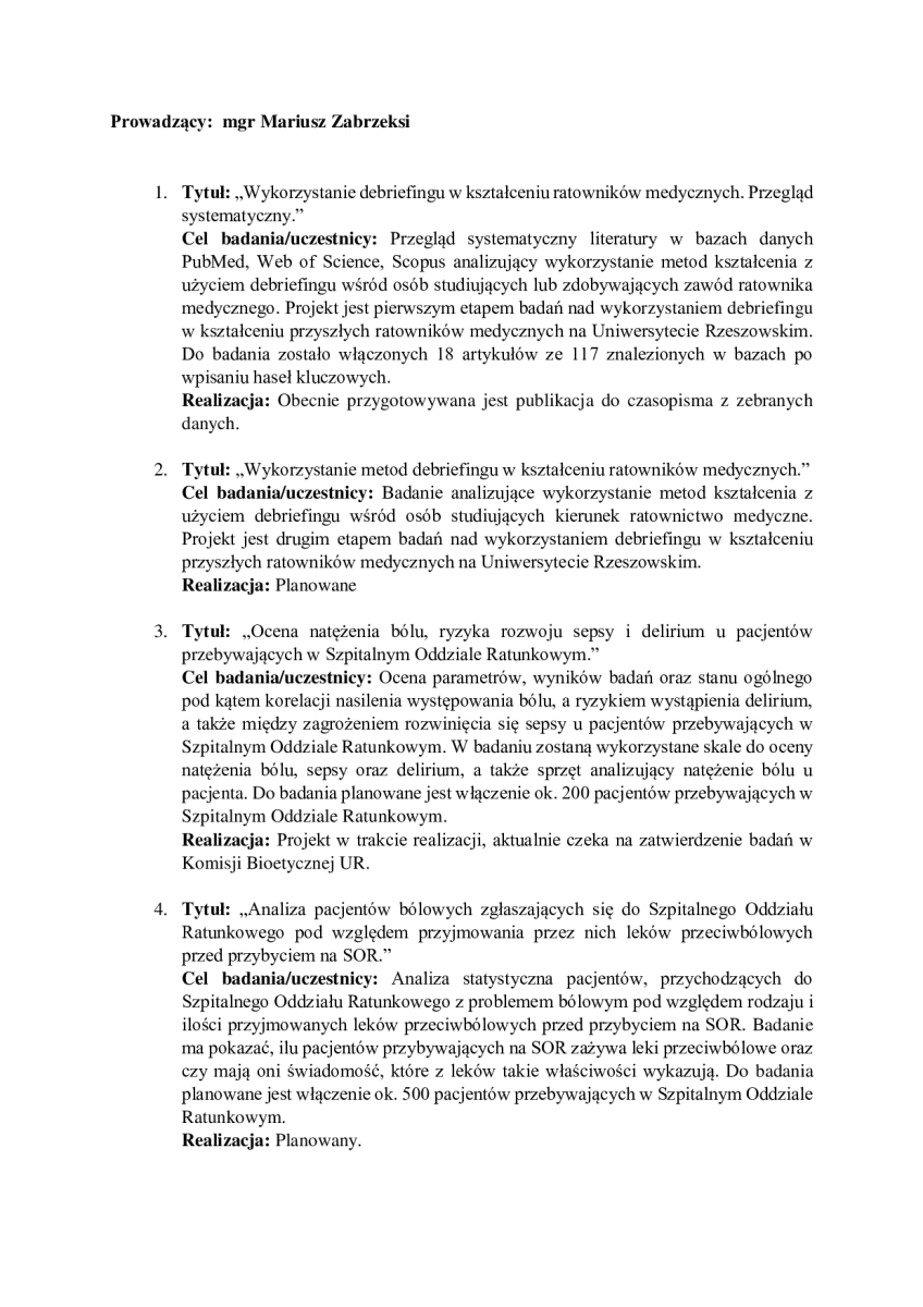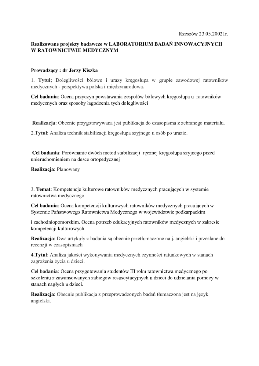 LABORATORIUM BADAŃ INNOWACYJNYCH W RATOWNICTWIE MEDYCZNYM