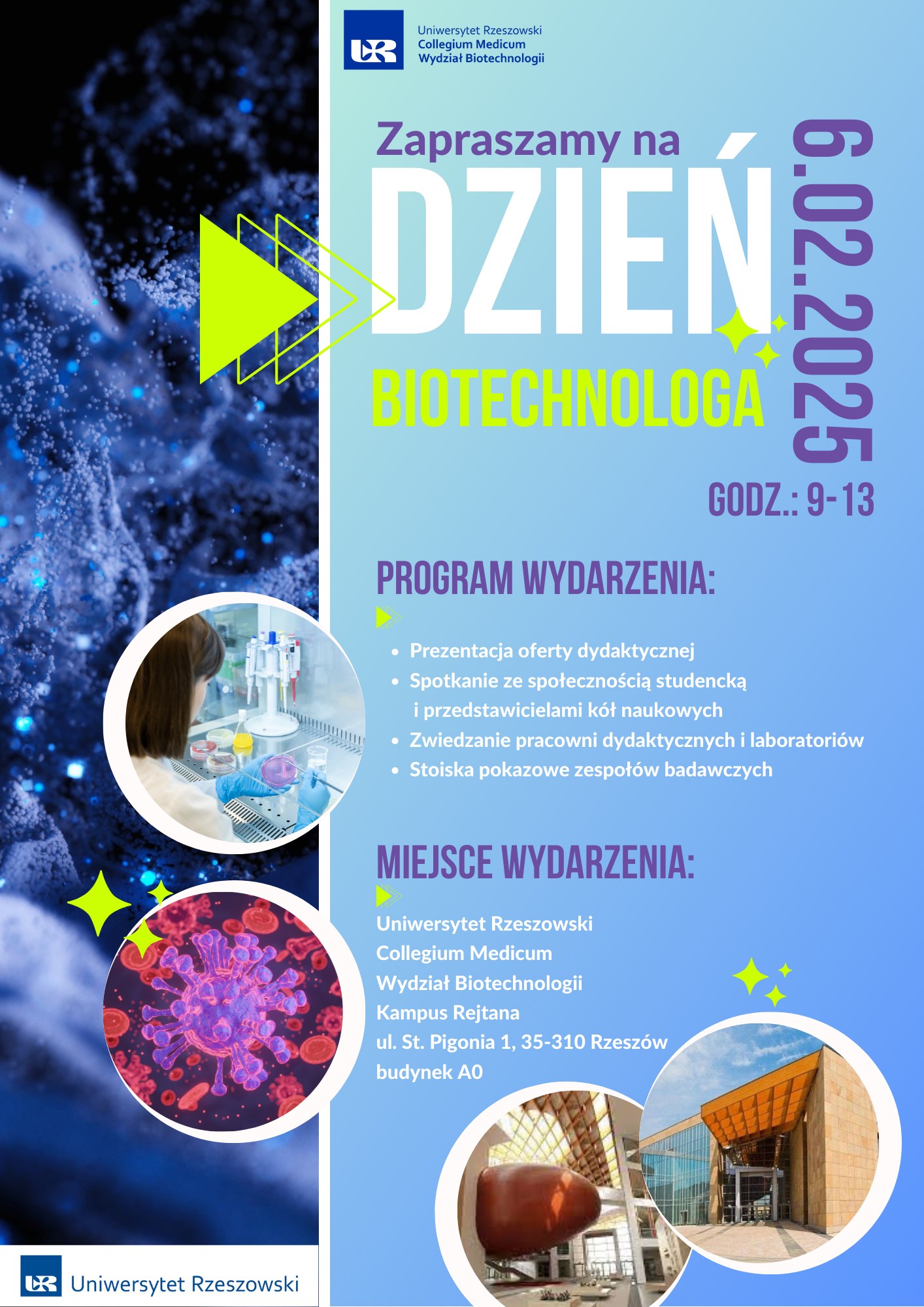 Wydział Biotechnologii Collegium Medicum UR, budynek A0, ul. Pigonia 1, Rzeszów
