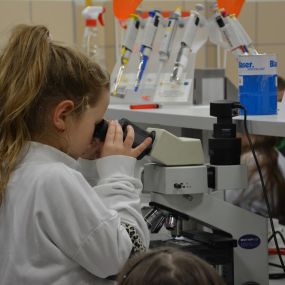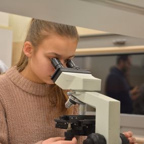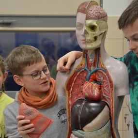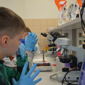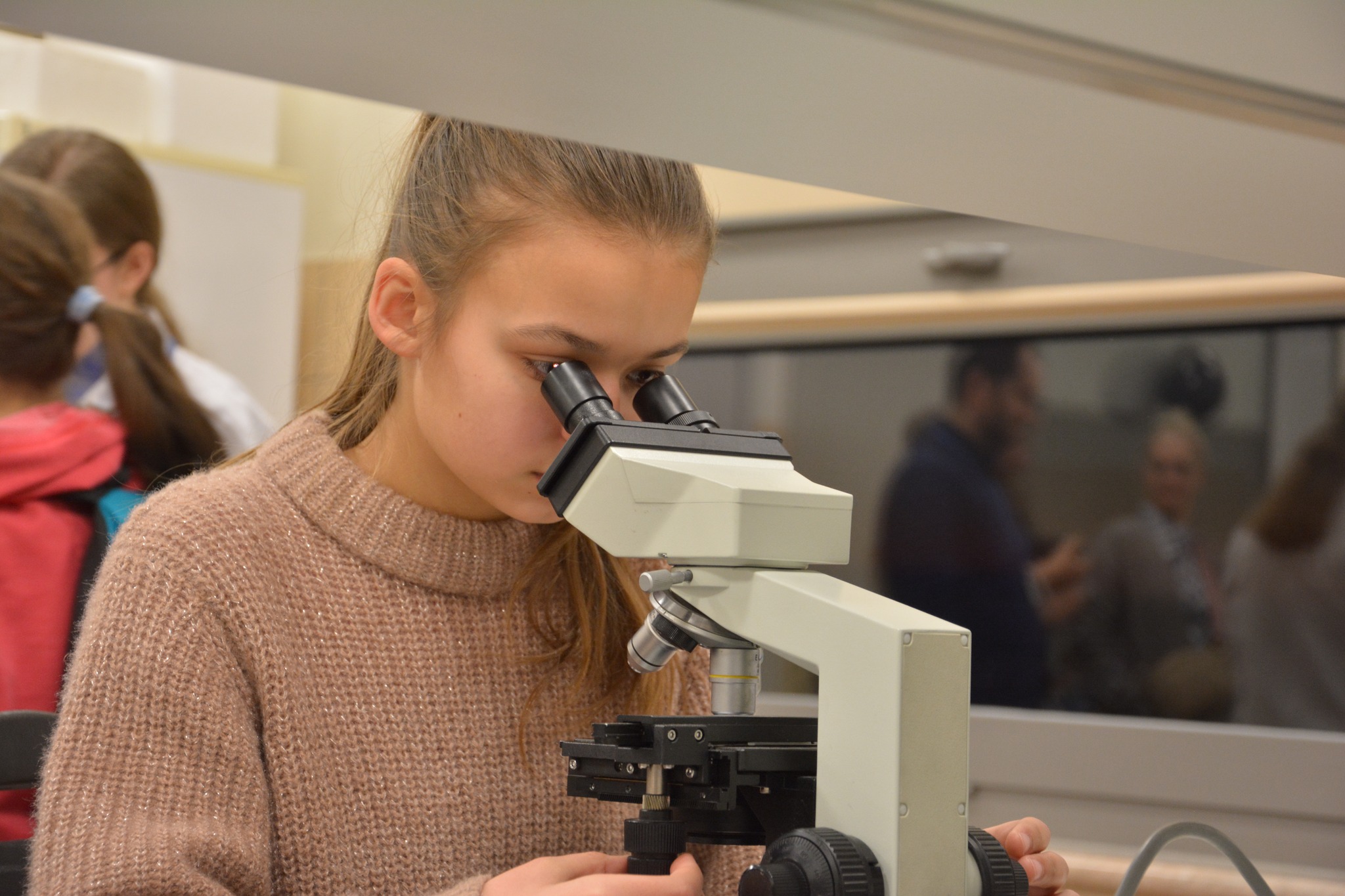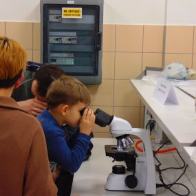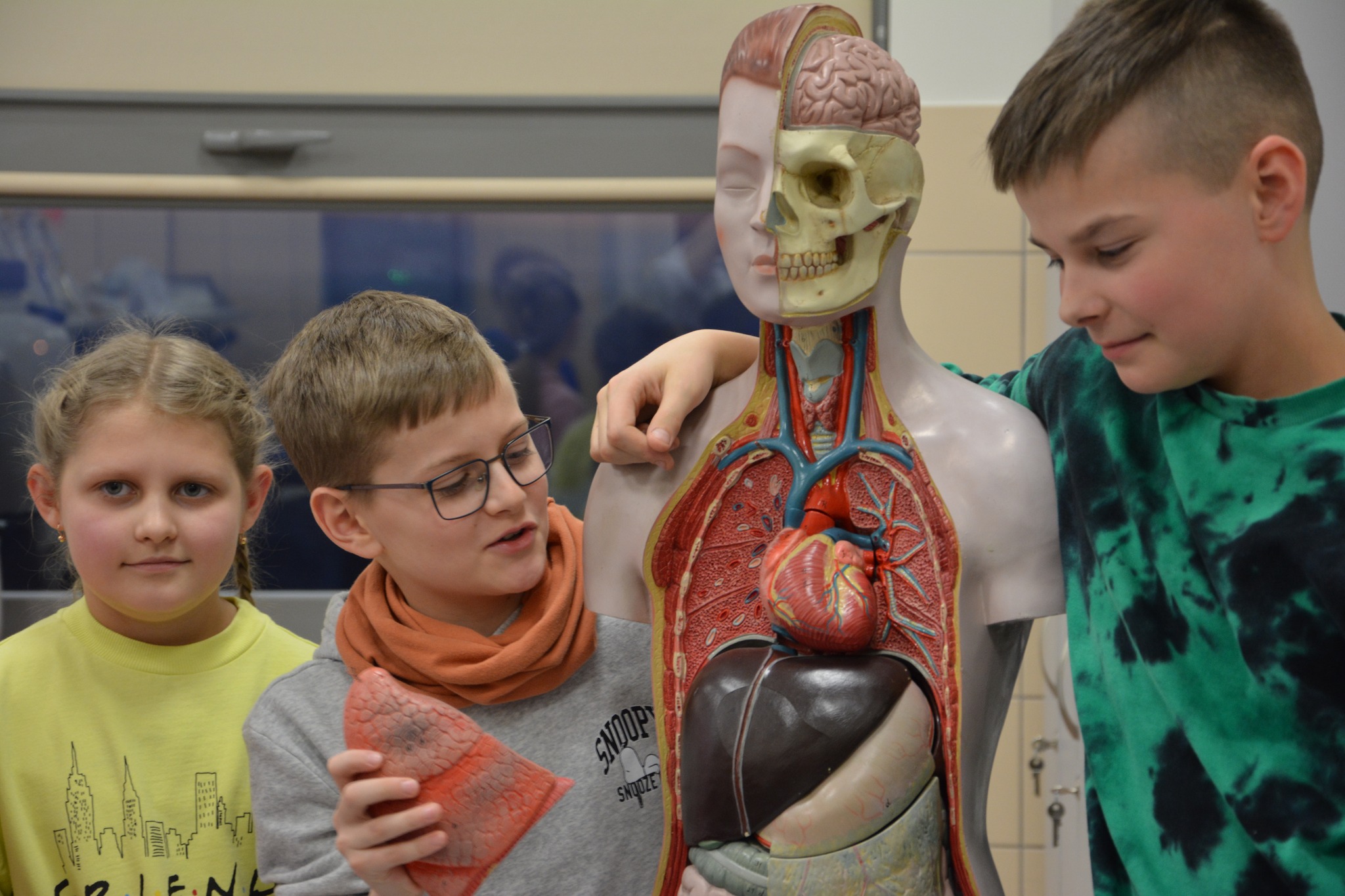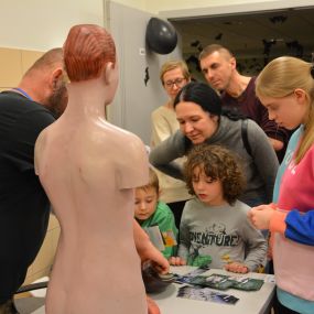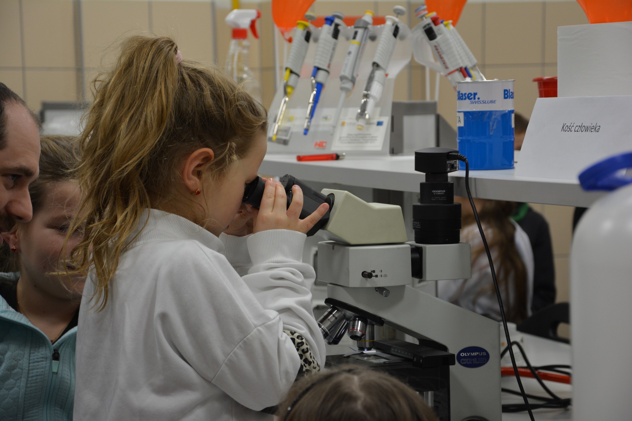 W ramach pokazów prezentowaliśmy metody barwienia bakterii, rodzaje bakterii oraz podłoży, na których je hodujemy. Było to bardzo ciekawe przeżycie dla uczniów ze szkoły podstawowej. Następnie anatomię człowieka w skali makro (model dydaktyczny) oraz mikro (preparaty mikroskopowe tkanek oraz atlasy histologiczne) poznawali odwiedzający nas uczniowie, nauczyciele, rodzice oraz inni uczestnicy. Przez cały czas na sali panował ruch i mieliśmy liczne grono oglądających, pytających i dyskutujących o anatomii i histologii 🙂