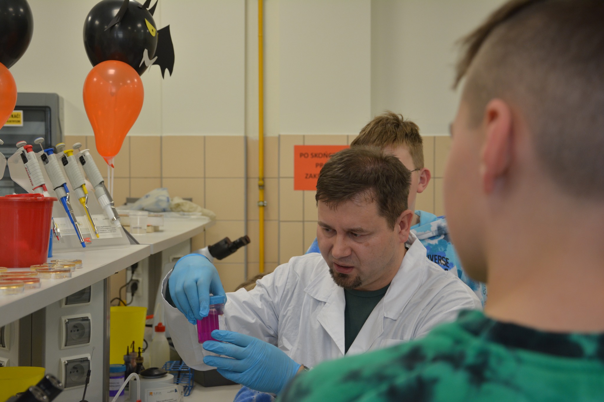 W miniony piątek (12.01.2024 r.) studenci z Studenckiego Koła Naukowego Bio-Tech i pracownicy Instytutu Biotechnologii wzięli udział w wydarzeniu Noc Biologów zorganizowanym przez Instytut Biologii.