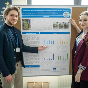 Podczas sesji posterowych studenci zaprezentowali pierwsze wyniki badań realizowanych w ramach projektu zatytułowanego „Ocena zanieczyszczeń chemicznych i mikrobiologicznych obszarów rekreacyjnych miasta Rzeszowa”, prowadzonego pod opieką naukową dr inż. Anny Górki, dr inż. Magdaleny Słowik-Borowiec prof. UR oraz dr Leszka Potockiego.