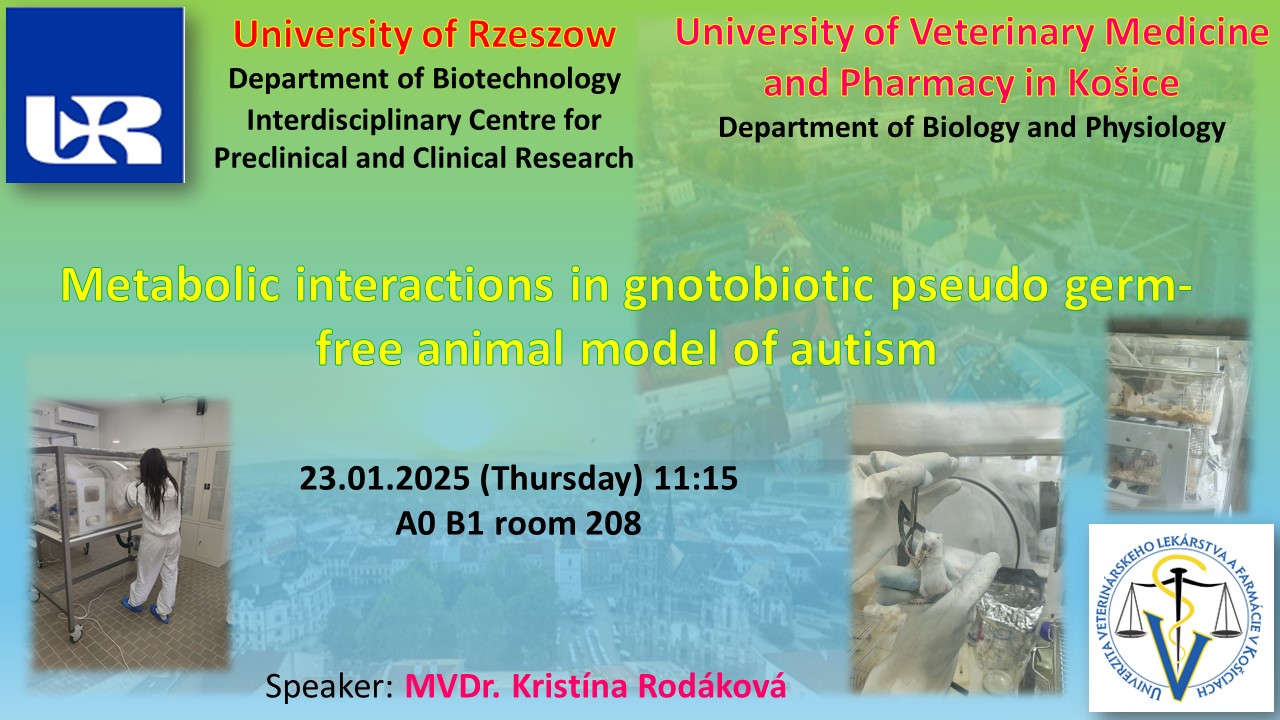 W dniu 23 stycznia, w sali 208 budynku A0 odbędzie się wykład na temat „Metabolic interactions in gnotobiotic pseudo germ-free animal model of autism“.