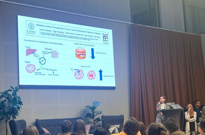 Studentka Biotechnologii pani Olga Kołodziej uczestniczyła w konferencji LUDC/LUDC-IRC/Exodiab, Helsingborg 2024 podczas której zaprezentowała wykład zatytułowany "Metabolic control of Complement Factor D and the Alternative Pathway in Diabetes".