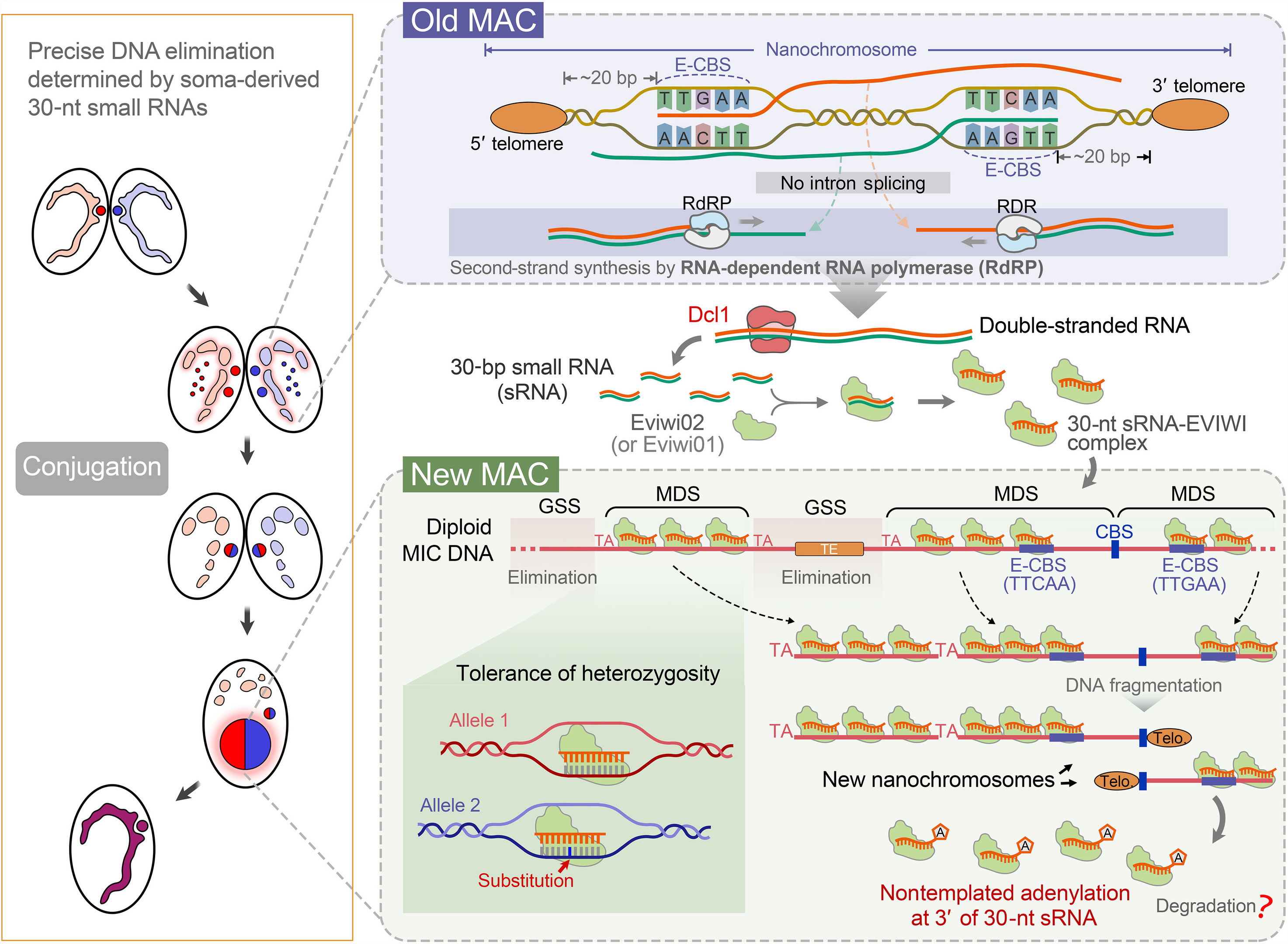 Euplotes vannus to jednokomórkowy orzęsek charakteryzujący się obecnością dwóch rodzajów jąder w komórce – mikronukleus (MIC) oraz makronukleus (MAC). W trakcie rozwoju tego orzęska, ok. ~80% genomu, stanowiącego transpozony oraz inne sekwencje DNA specyficzne dla linii zarodkowej (MIC) musi zostać precyzyjne usunięte w celu utworzenia funkcjonalnego jądra linii somatycznej (MAC). Jednak mechanizm, dzięki któremu E. vannus odróżnia sekwencje DNA przeznaczone do zachowania od tych podlegających eliminacji, pozostawał dotychczas nieznany. Dzięki swoim badaniom, międzynarodowy zespół naukowców odkrył nową klasę małych cząsteczek RNA o długości 30 nukleotydów (nt), produkowanych przez rybonukleazę typu Dicer. Te 30 nt sRNAs precyzyjnie rozpoznają i chronią właściwe sekwencje DNA przed usunięciem, odgrywając kluczową rolę w zachowaniu integralności genomu E. vannus.