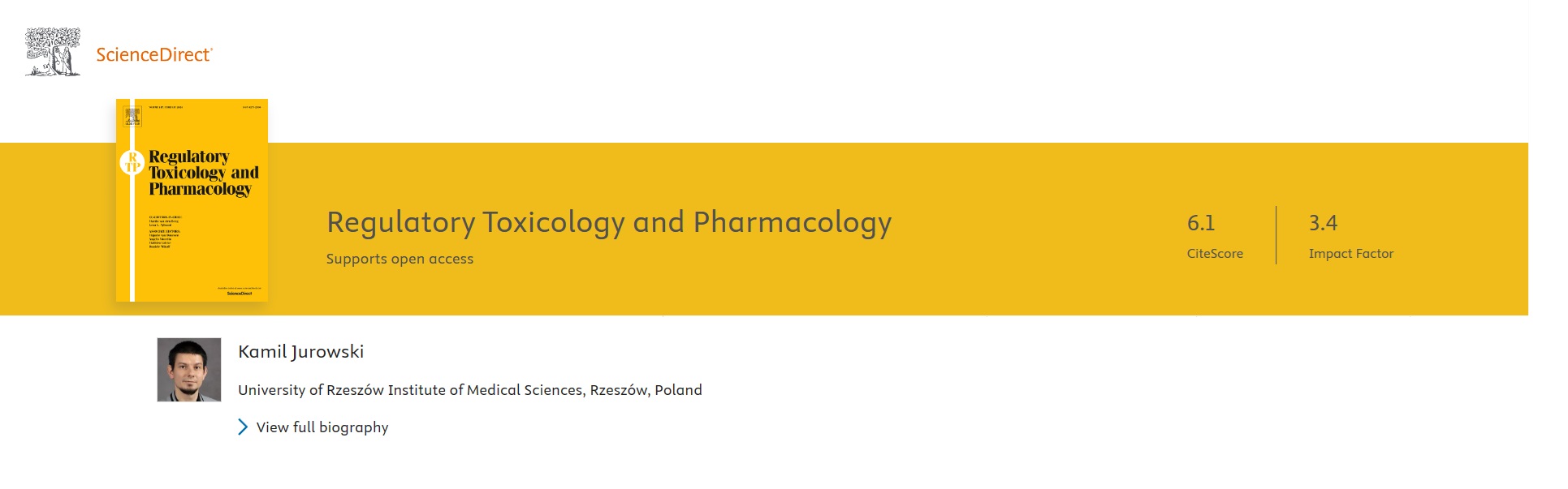 Informujemy, że Pan dr hab. n. med. i n. o zdr. Kamil Jurowski prof. UR, prof. IEM dołączył do grona Editorial Board w specjalistycznym czasopiśmie Regulatory Toxicology and Pharmacology (RTP) (Elsevier, IF = 3.4; 70 pkt MEiN).