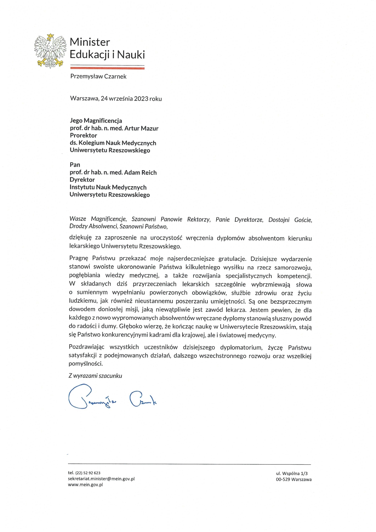 - Pan Dr hab. n. med. Wojciech Wąsek, prof. UR