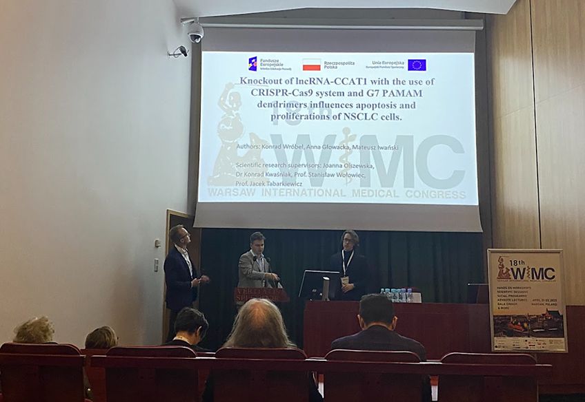 Udział w konferencji odbył się w ramach realizacji grantu MEiN „Najlepsi z najlepszych! 4.0” pt. „Popularyzacja innowacyjnych wyników badań naukowych z obszaru onkologii precyzyjnej w ramach udziału studentów w międzynarodowych konferencjach”. W trakcie konferencji p. Konrad Wróbel zaprezentował pracę pt. „Knockout of lncRNA-CCAT1 with the use of CRISP-CAS9 system and G7 PAMAM dendrimers influences