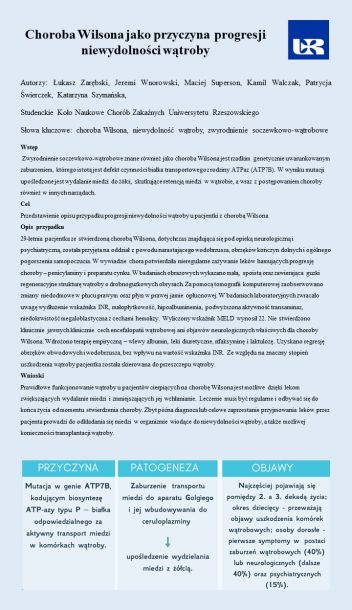 56. Łukasz Zarębski, Jeremi Wnorowski, Maciej Superson, Kamil Walczak, Patrycja Świerczek, Katarzyna Szymańska ''Wilson's disease as a cause of liver failure progression''