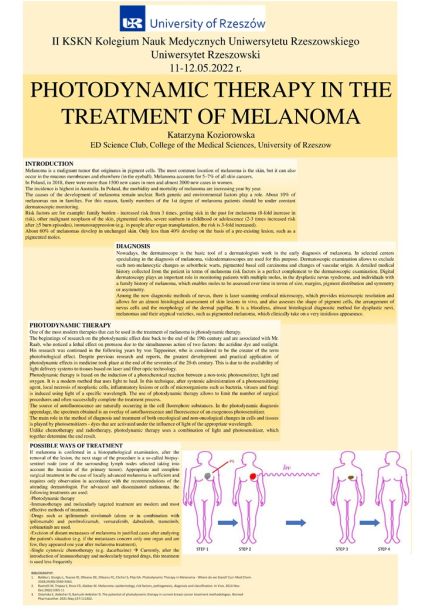 1. Katarzyna Kozirowska "Photodynamic therapy in the treatment of melanoma"