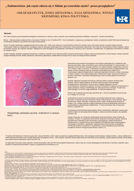 74. Oskar Krawczyk, Daria Sieniawska, Julia Sieniawska, Witold Krzemiński, Kinga Polityńska ''Endometriosis- how often happens in a caesarean section scar? - a review''
