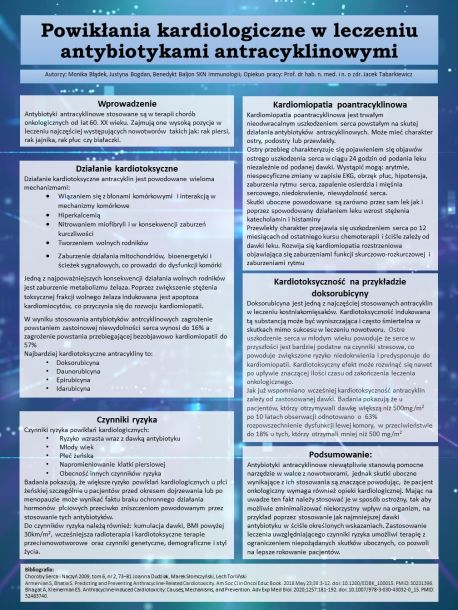 103. Monika Błądek, Justyna Bogdan, Benedykt Baljon ''Cardiac complications in treatment with anthracycline antibiotics''