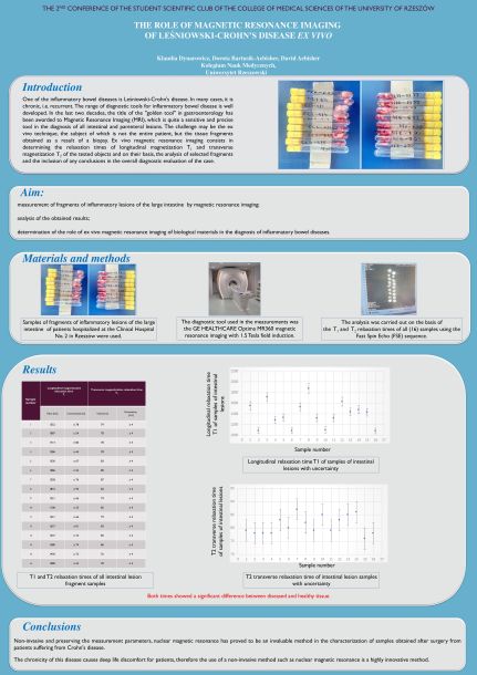 111. Klaudia Dynarowicz, Dorota Bartusik-Aebisher, David Aebisher ''The role of magnetic resonance imaging of Leśniowski-Crohn`s disease vivo''