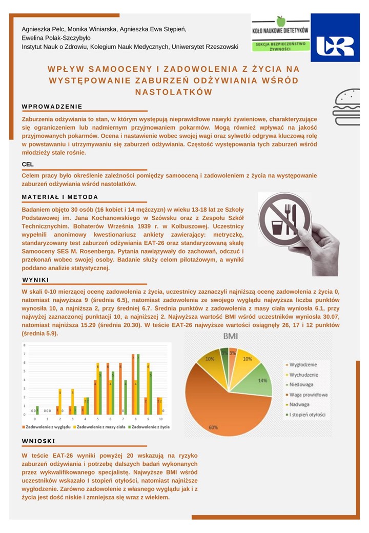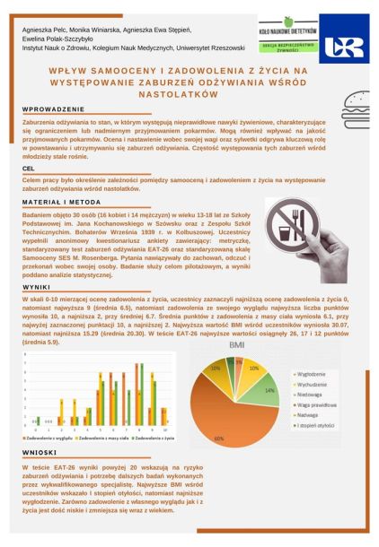 109. Agnieszka Pelc, Monika Winiarska, Agnieszka Ewa Stępień ''Influence of self-esteem and life satisfaction on the occurrence of eating disorders among adolescents''