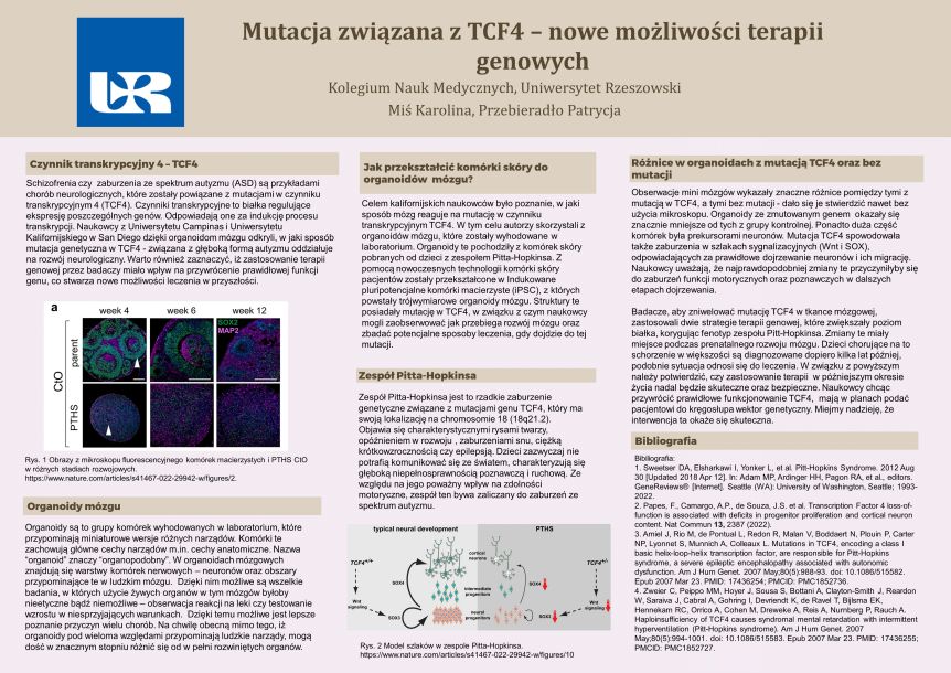 89. Karolina Miś, Patrycja Przebieradło ''TCF4-related mutation - new possibilities of gene therapy''