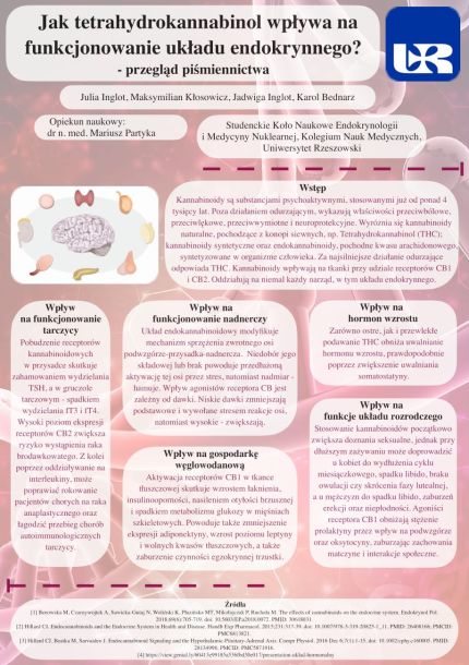 81. Julia Inglot, Maksymilian Kłosowicz, Jadwiga Inglot, Karol Bednarz ''How does tetrahydrocannabinol affect the functioning of the endocrine system? - literature review''