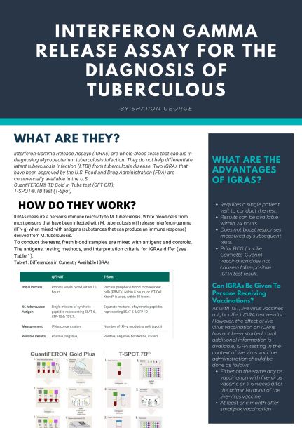 108. Sharon George ''Interferon gamma release assay for the diagnosis of tuberculous''