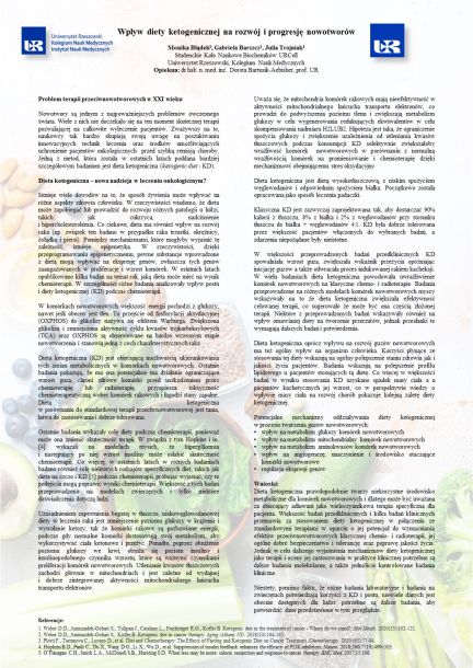 115. Monika Błądek, Gabriela Barszcz, Julia Trojniak ''The influence of the ketogenic diet on the development and progression of cancer''