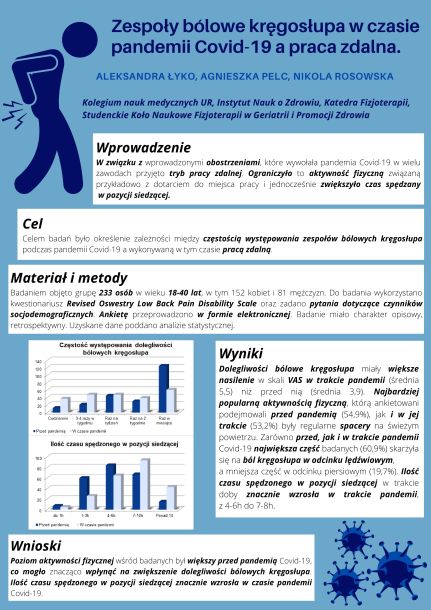 121. Aleksandra Łyko, Agnieszka Pelc, Nikola Rosowska ''Back pain syndromes during the Covid-19 pandemic and remote work''