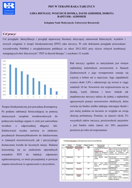 99. Lidia Bieniasz, Wojciech Domka, David Aebisher, Dorota Bartusik- Aebisher ''PDT in the treatment of thyroid cancer''