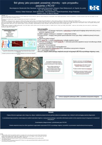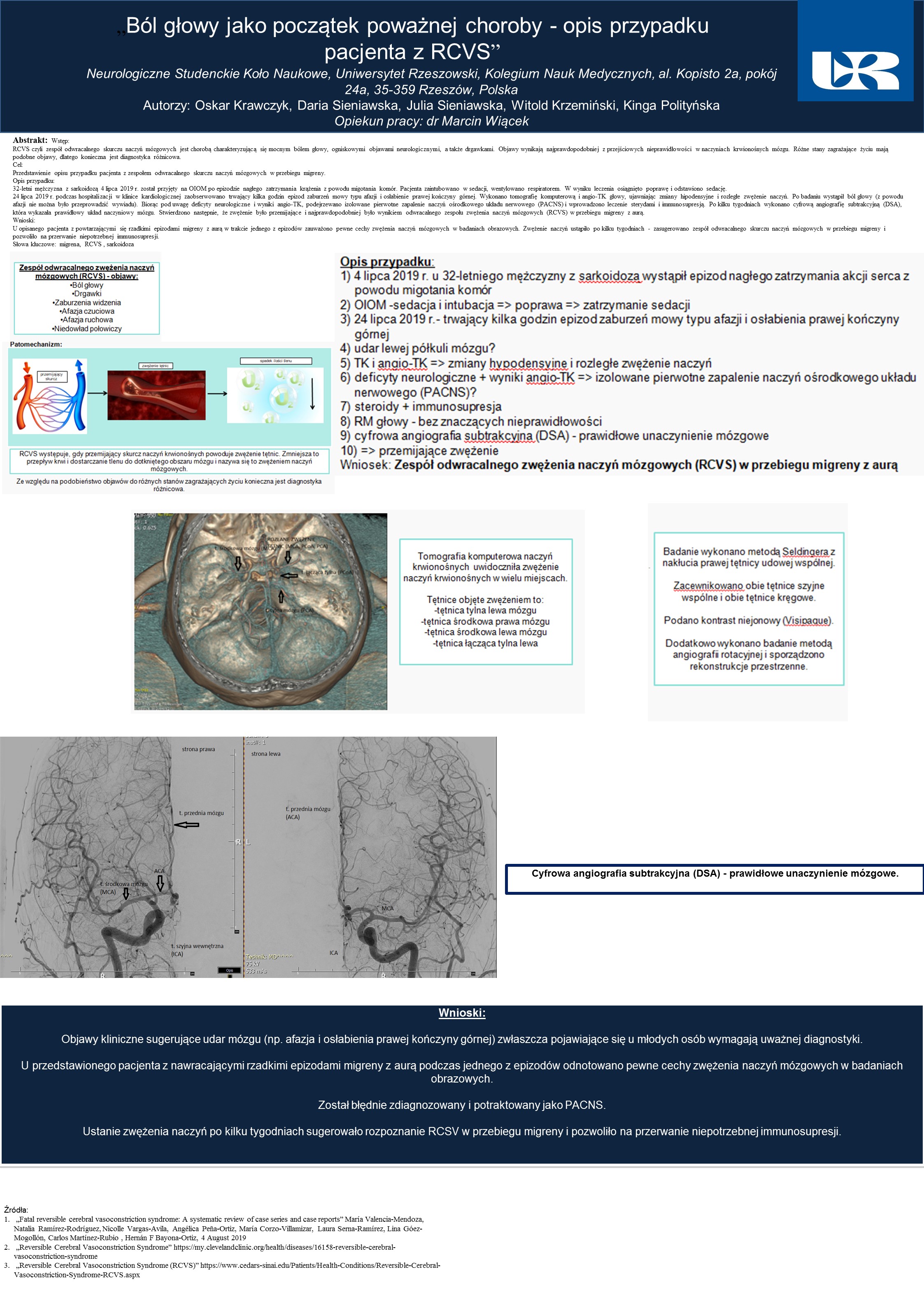 50. Oskar Krawczyk, Daria Sieniawska, Julia Sieniawska, Witold Krzemiński, Kinga Polityńska "Headache as the beginning of a serious illness - a case report of a patient with RCVS"