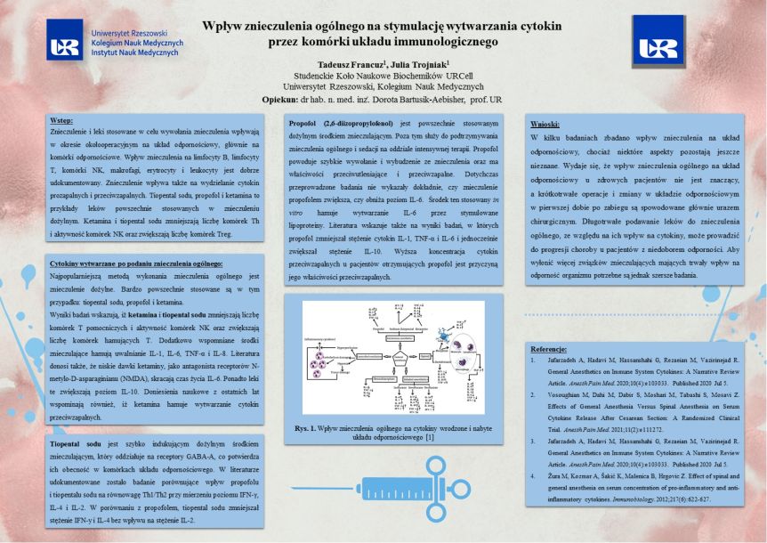 127. Tadeusz Francuz, Julia Trojniak ''Effect of general anesthesia on the stimulation of cytokine production by cells of the immune system''