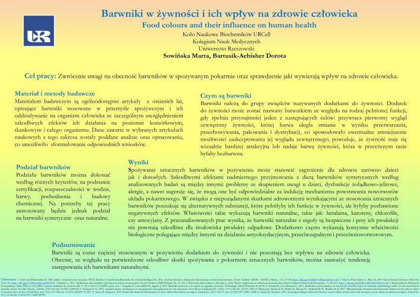 42. Marta Sowińska, Dorota Bartusik-Aebisher ''Food colours and their influence on human health''