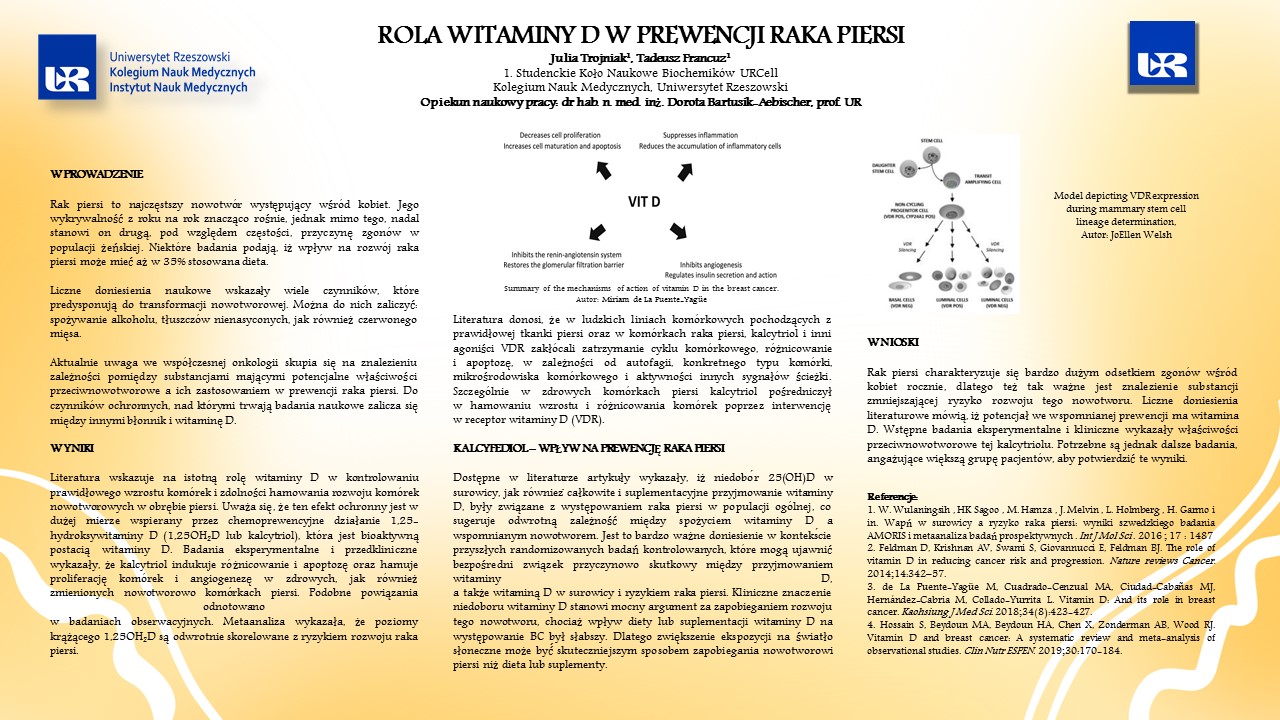 105. Julia Trojniak, Tadeusz Francuz ''The role of vitamin D in the prevention of breast cancer''