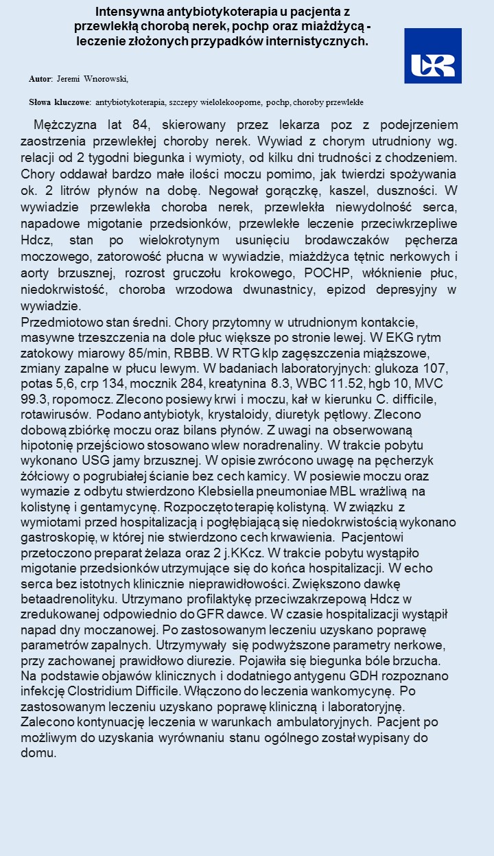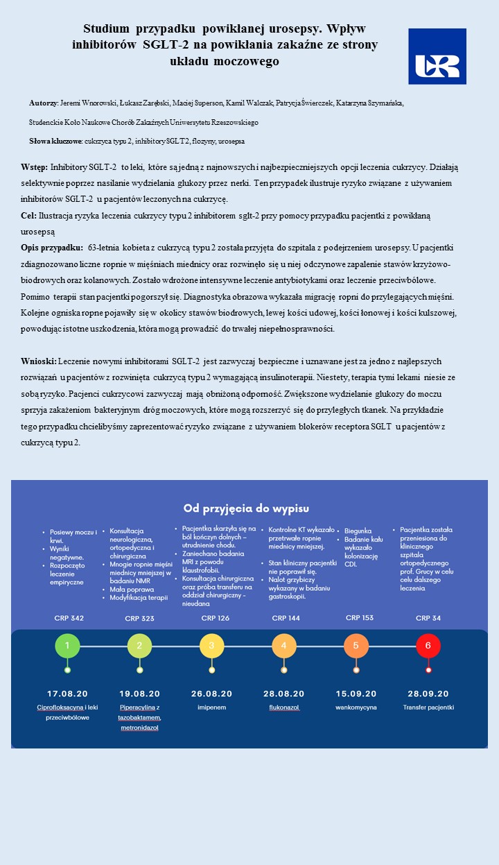 107. Jeremi Wnorowski, Łukasz Zarębski, Maciej Superson, Kamil Walczak, Patrycja Świerczek, Katarzyna Szymańska ''A case study of complicated urosepsis. Influence of SGLT-2 inhibitors on infectious complications of the urinary system''