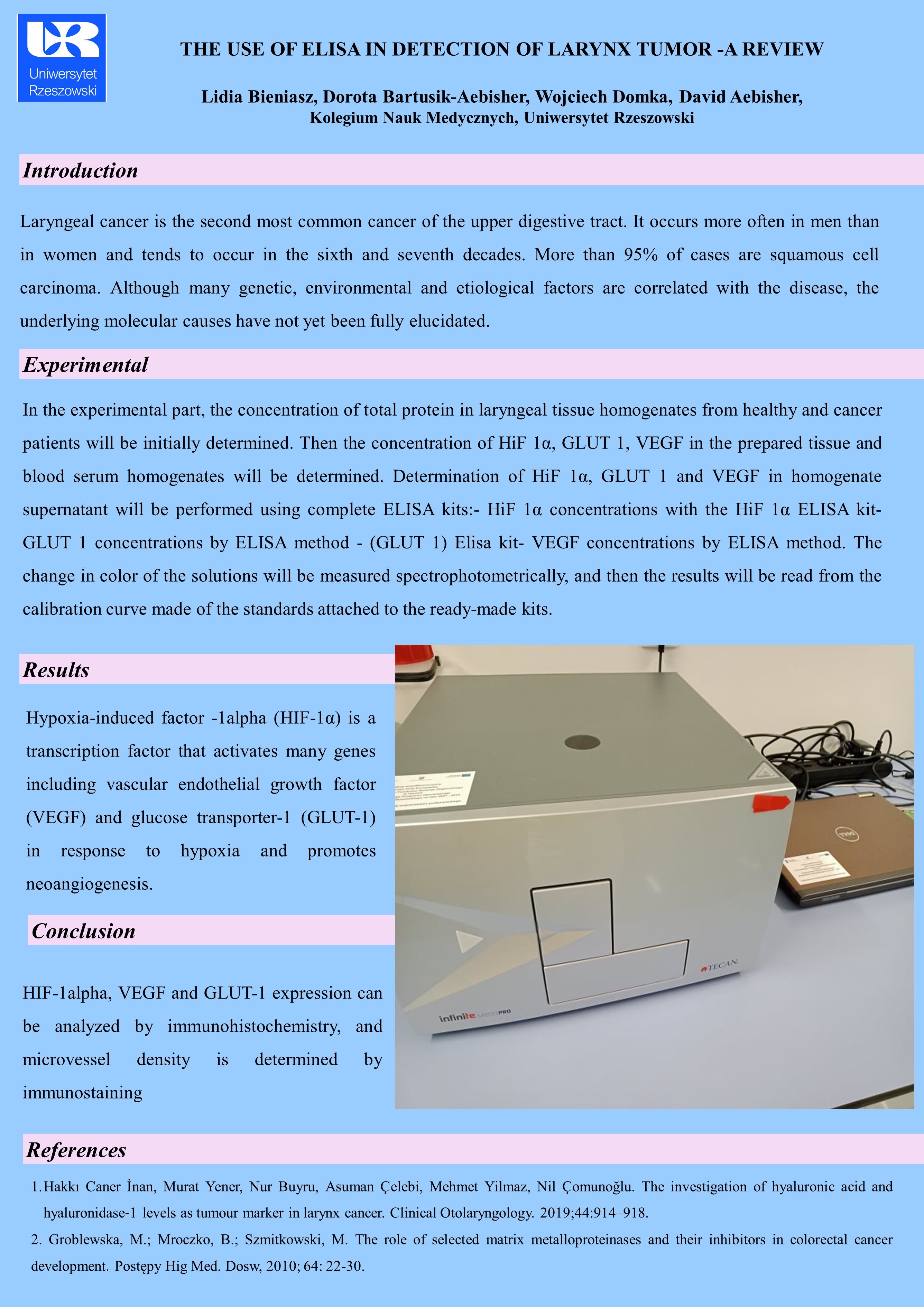 112. Lidia Bieniasz, Dorota Bartusik-Aebisher, Wojciech Domka, David Aebisher ''The use of Elisa in detection of larynx tumor -a review''