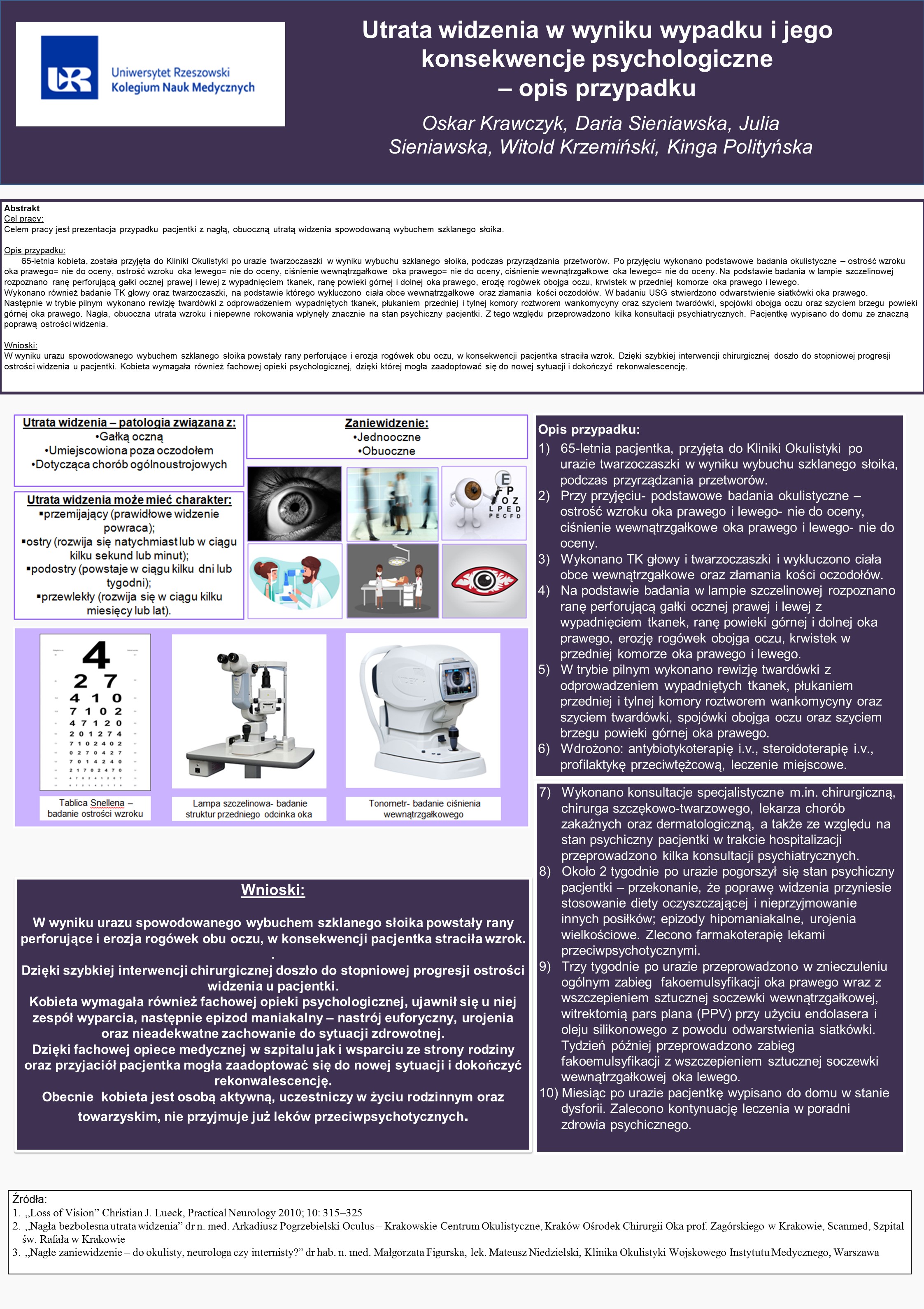 114. Oskar Krawczyk, Daria Sieniawska, Julia Sieniawska, Witold Krzemiński, Kinga Polityńska ''Loss of vision as a result of an accident and its psychological consequences - a case report''