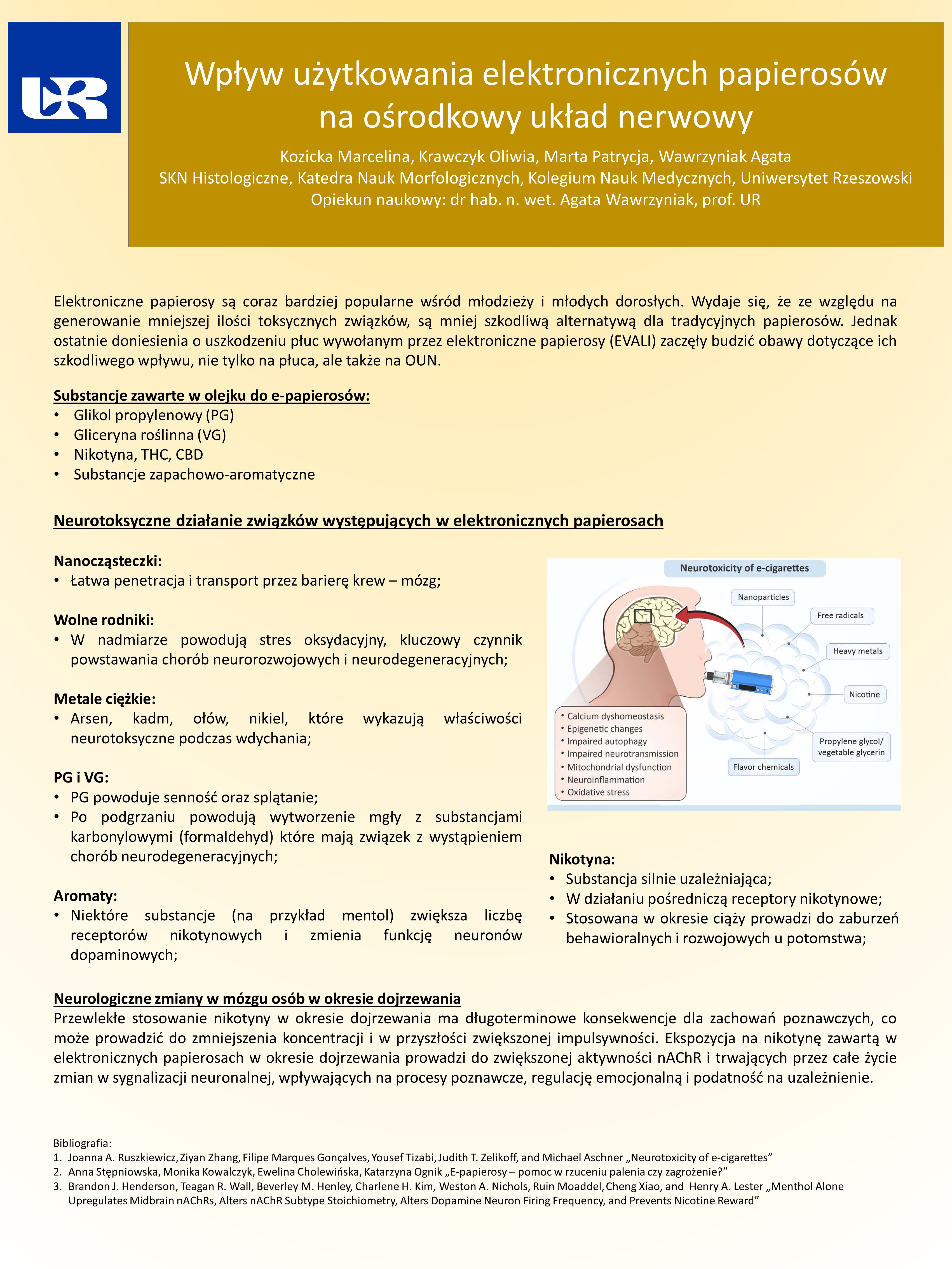 116. Kozicka Marcelina, Krawczyk Oliwia, Marta Patrycja, Wawrzyniak Agata ''The influence of the use of electronic cigarettes on the central nervous system''