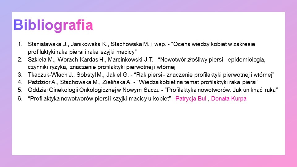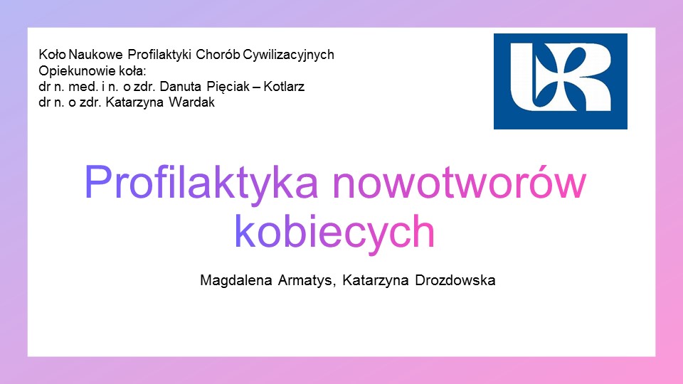 21. Katarzyna Drozdowska, Magdalena Armatys ''Prevention of female cancers''