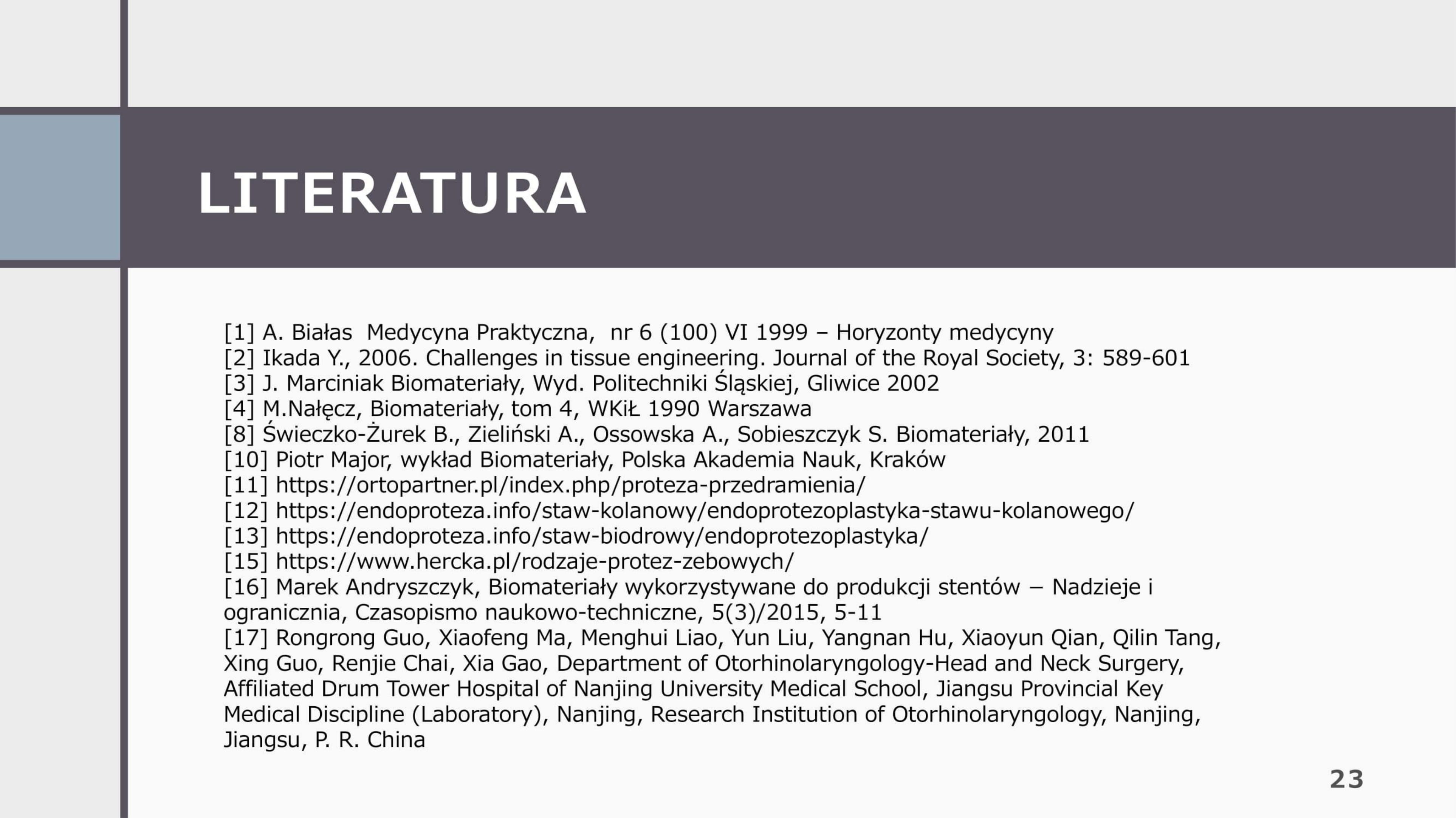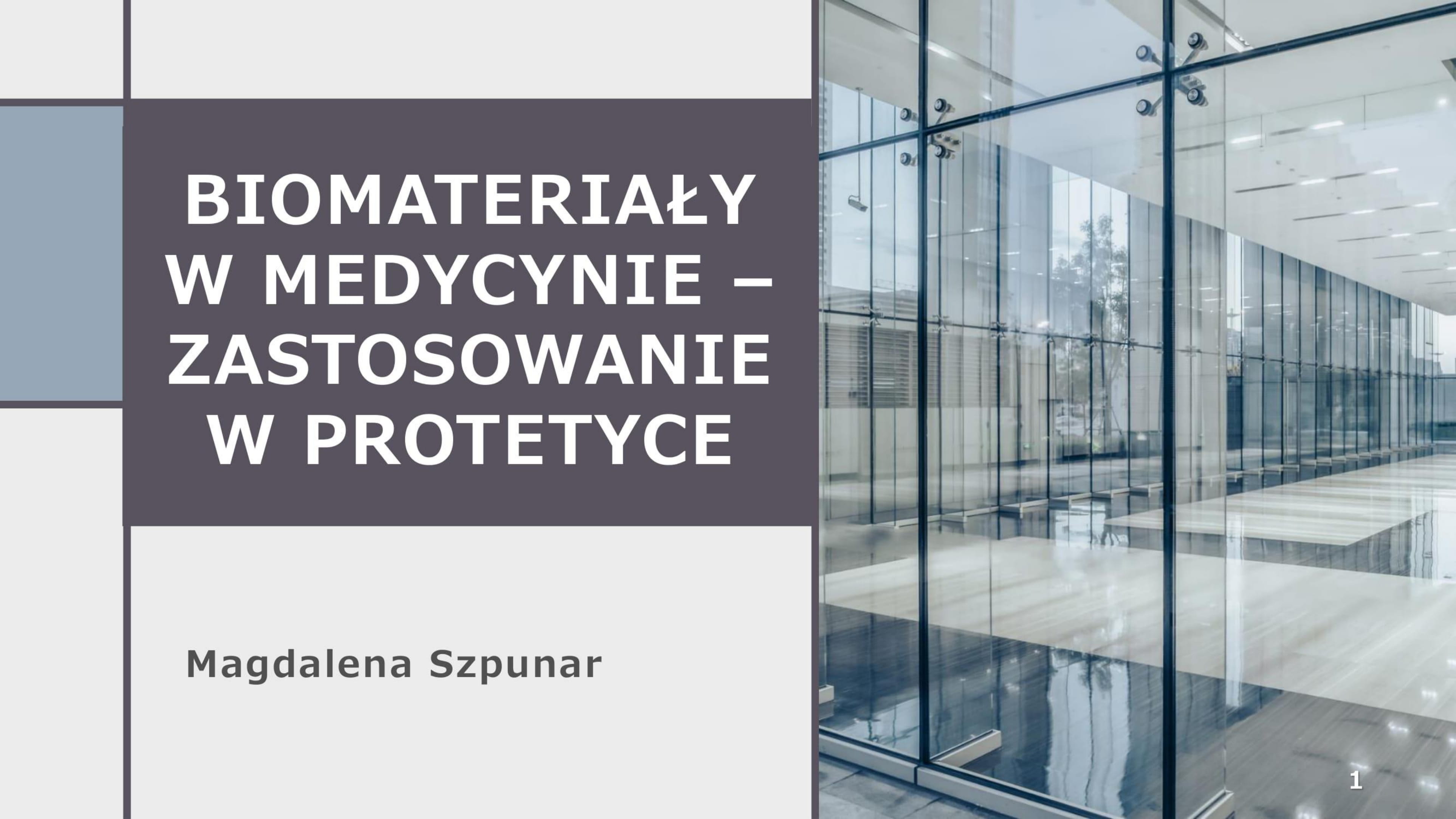 37. Magdalena Szpunar ''Biomaterials in medicine - application in prosthetics''