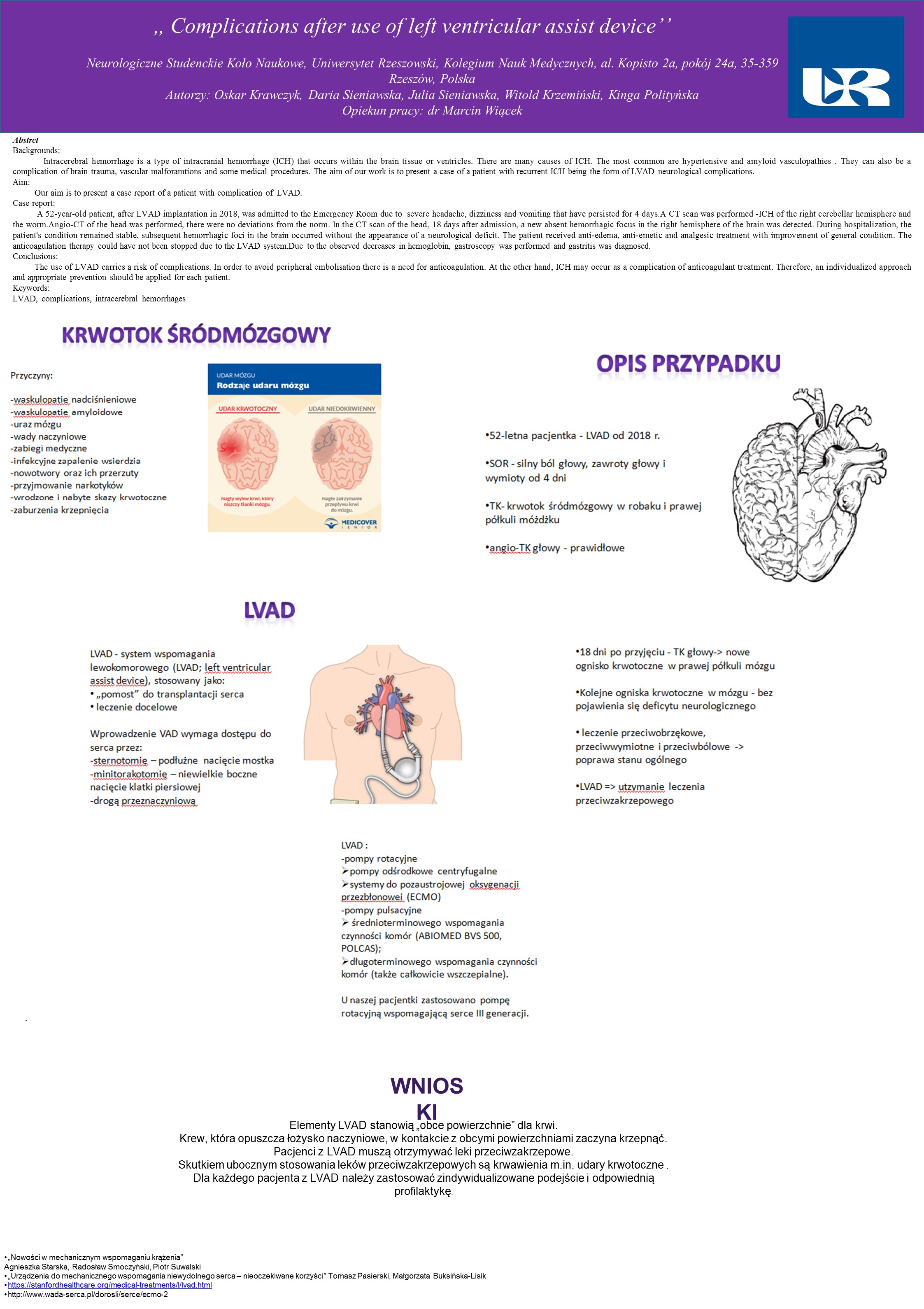 61. Oskar Krawczyk, Daria Sieniawska, Julia Sieniawska, Witold Krzemiński, Kinga Polityńska ''Complications after use of left ventricular assist device''