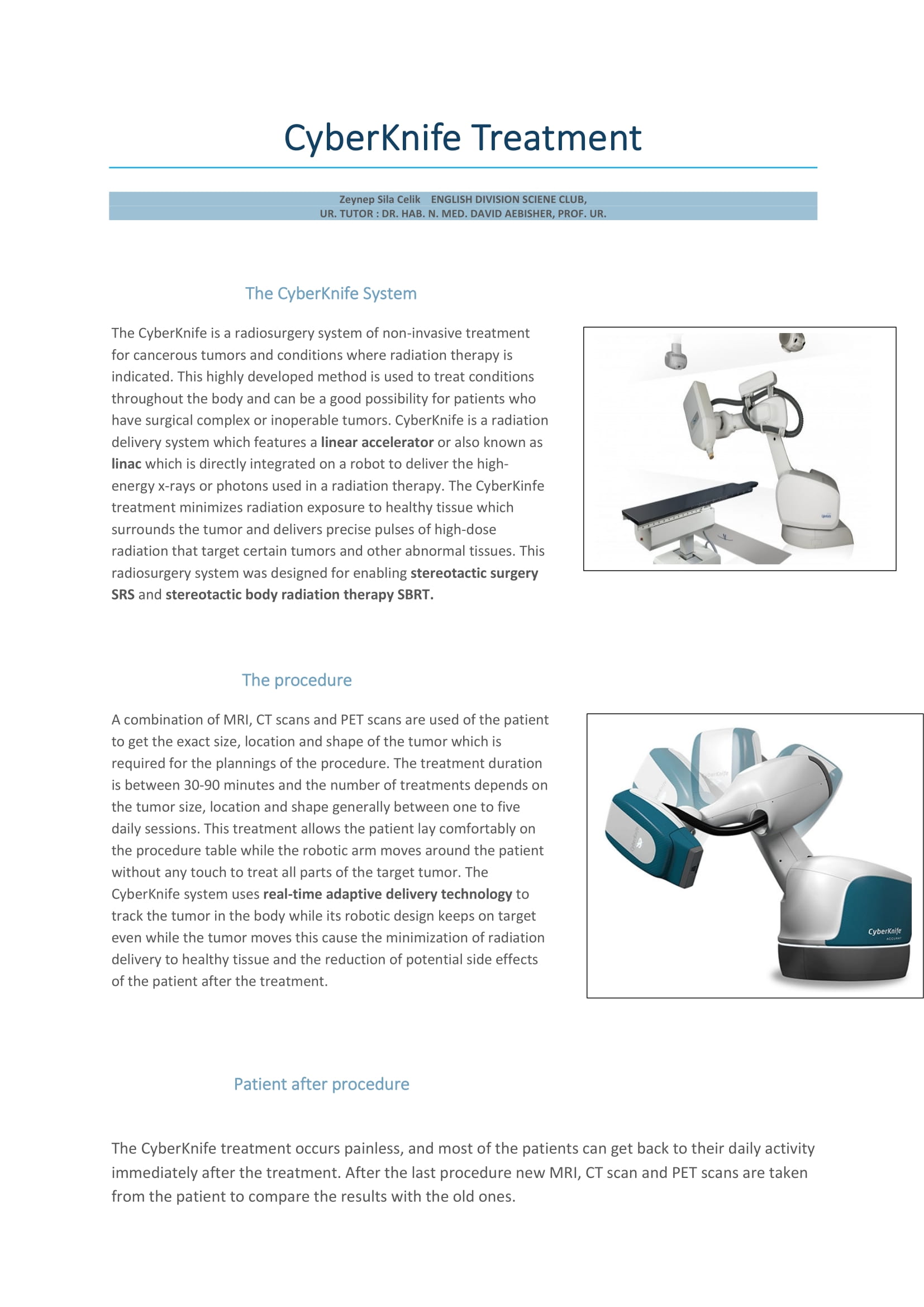 63. Zeynep Sila Celik ''CyberKnife Treatment''