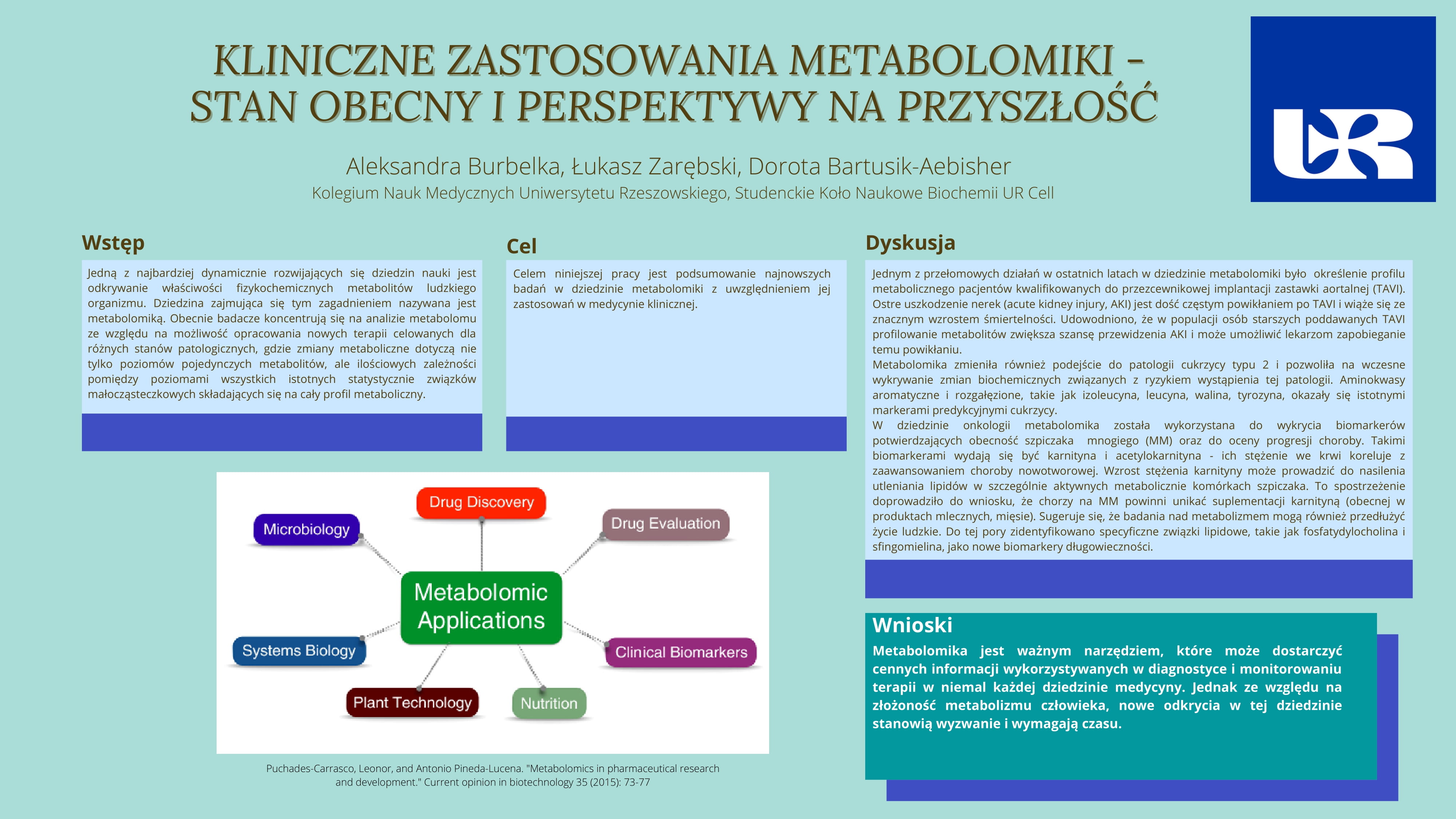 83. Aleksandra Burbelka, Łukasz Zarębski, Dorota Bartusik-Aebisher ''Clinical applications of metabolomics - present state and future prospects''
