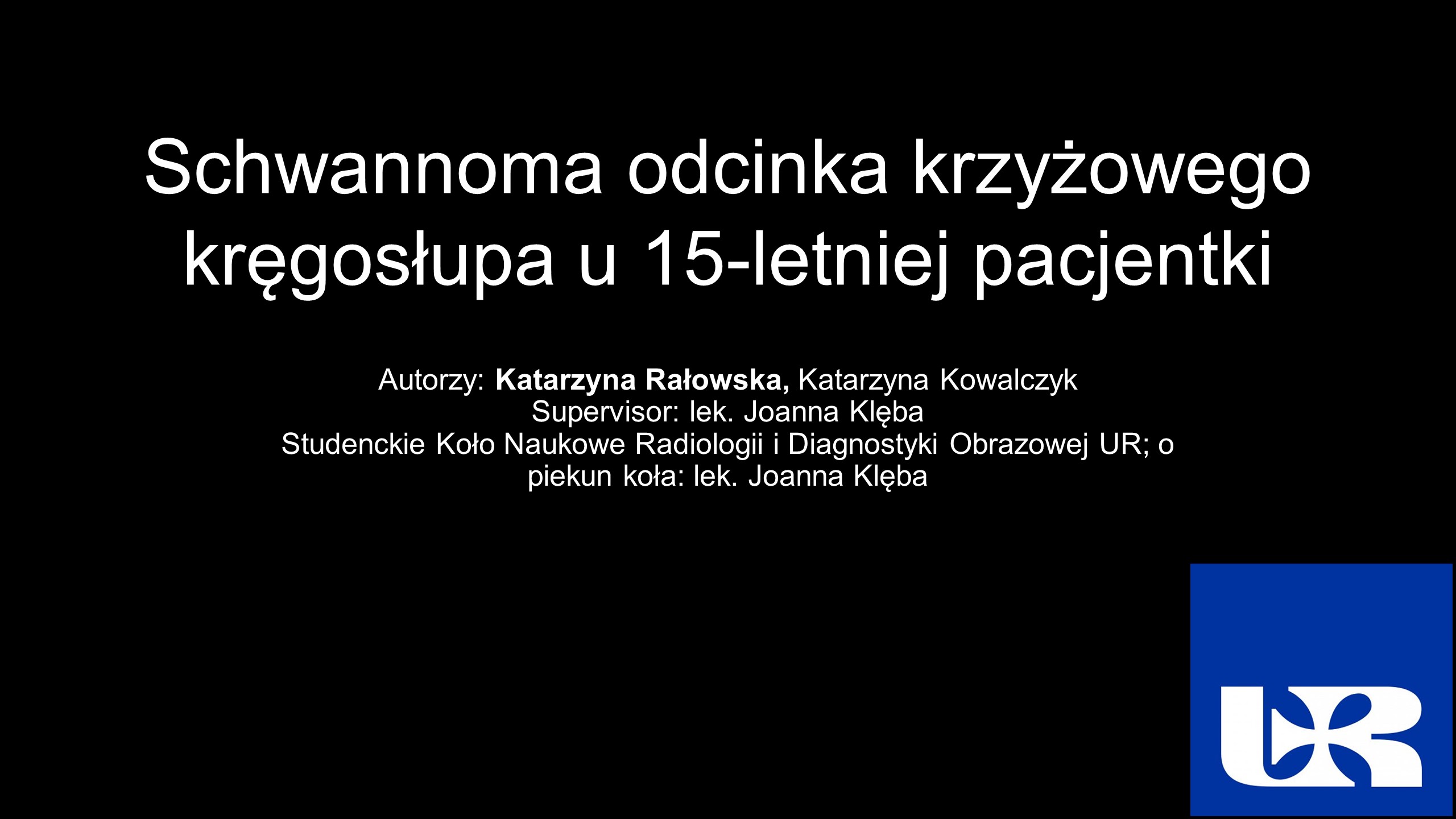 7. Katarzyna Rałowska, Katarzyna Kowalczyk ''Sacral schwannoma in a 15-year-old female''