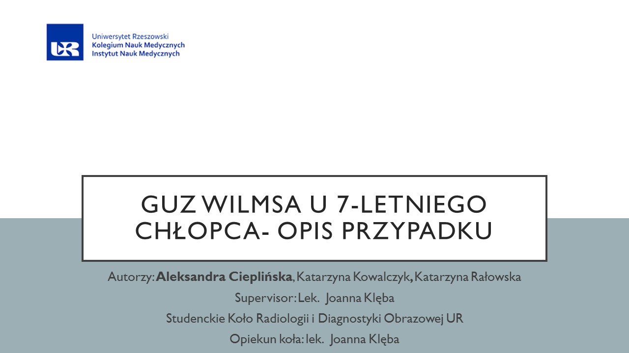 6. Aleksandra Cieplińska, Katarzyna Kowalczyk, Katarzyna Rałowska ''Wilms Tumor in a 7-year-old boy- case report''