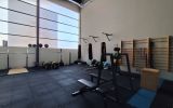 • Bieżnią rozgrzewkowa - 3 tory o szerokości 1,22m, z linią startu i zaznaczonymi dystansami 50 i 60 m w której dodatkowo znajduje się strefa przygotowania motorycznego oraz ring bokserski,