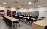 • 90 miejsc dla trenerów, zawodników – siedziska „typu stadionowego” z możliwością demontażu przez uprawniony personel. Siedziska zaprojektowano jako automatycznie składane.