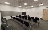 • 210 miejsc dla widzów – trybuna wykonana w technologii prefabrykatów betonowych z zainstalowanymi na stałe siedziskami typu „stadionowego”. Siedziska zaprojektowano jako automatycznie składane. Minimalna szerokość przejścia dla każdego rzędu po złożeni krzesełek wynosi 45cm.