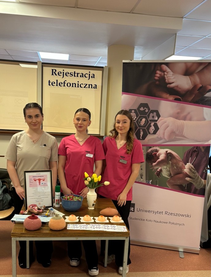 Dnia 25 października 2025 roku w Millennium Hall w Rzeszowie odbyła się akcja promująca zdrowy styl życia, zdrowie oraz świadomość zdrowotną kobiet. W wydarzeniu aktywnie uczestniczyło Studenckie Koło Naukowe Położnych, które przygotowało i prowadziło stoisko edukacyjne poświęcone samobadaniu piersi. W realizację akcji zaangażowane były: Karolina Szal, Julia Uchwat, Urszula Maczuga, Alicja Gacek, Natalia Dziuba oraz Martyna Grys. Głównym celem stanowiska była edukacja kobiet w zakresie profilaktyki raka piersi, ze szczególnym uwzględnieniem zasad prawidłowego wykonywania samobadania.