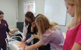 Uczniowie mieli możliwość zapoznać się z bogatą ofertą kierunków studiów w kolegium Nauk Medycznych oraz z członkami SKN Położnych biorąc czynny udział w interaktywnych zajęciach i pokazach umiejętności praktycznych, które studenci zdobywają na zajęciach w pracowniach umiejętności położniczych.