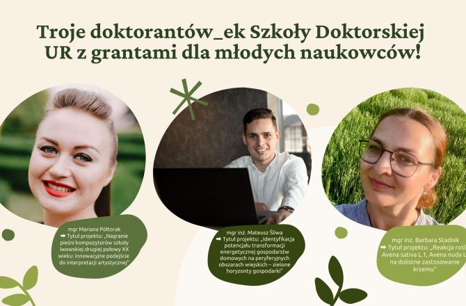 zobacz więcej Troje doktorantów UR z grantami dla młodych naukowców!
