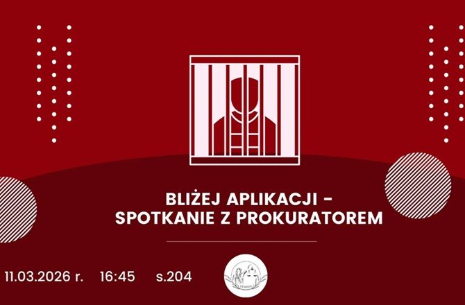 Koło Naukowe Postępowania Karnego i Prawa Karnego Wykonawczego „Temida” zaprasza do udziału w spotkaniu "Bliżej aplikacji - spotkanie z prokuratorem", które odbędzie się 11.03.2026 r. o godz. 16:45 w s. 204 w budynku WPA przy ul. Grunwaldzkiej 13.