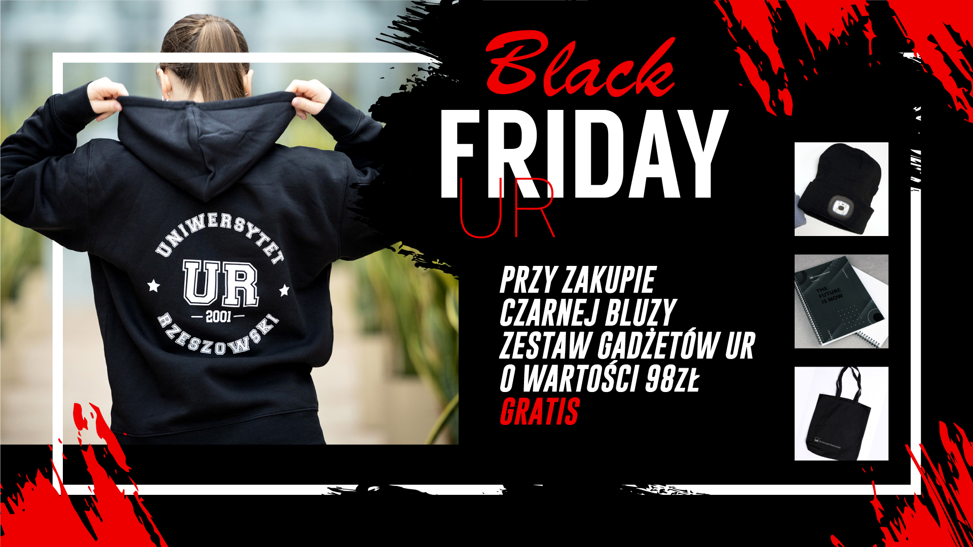 Kup czarną bluzę z logo UR, a otrzymasz GRATIS zestaw czarnych gadżetów o wartości 98 zł!