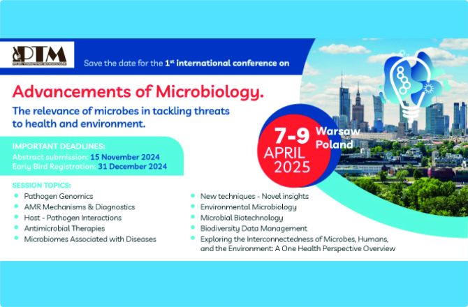 pn. „Advancements of Microbiology. The relevance of microbes in tackling threats to health and environment”, która odbędzie się w Warszawie w dniach 7-9 kwietnia 2025 roku.