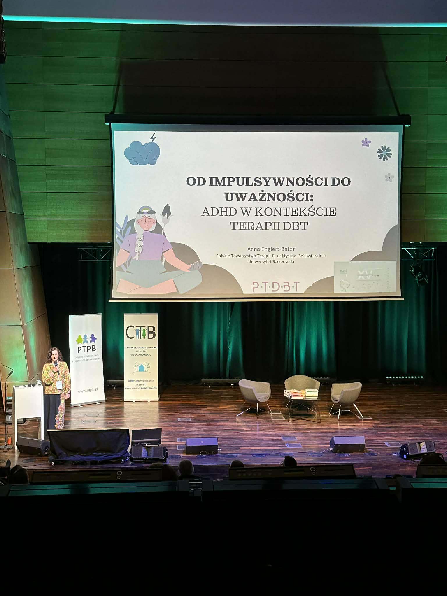 W ramach wydarzenia wygłosiła wykład pt. „Od impulsywności do uważności. ADHD w kontekście terapii DBT”, w którym pokazała, jak podejście dialektyczno-behawioralne może wspierać osoby z ADHD – szczególnie w obszarze uważności, regulacji emocji i radzenia sobie z impulsywnością.