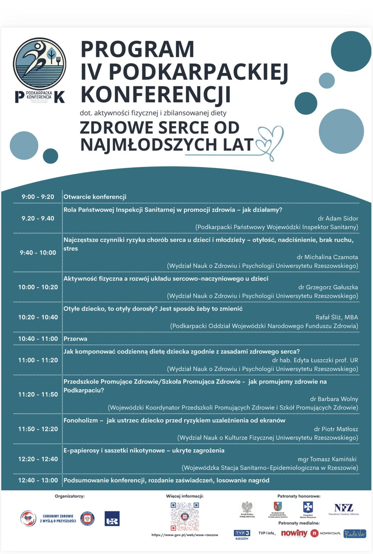 Jako współorganizatorzy serdecznie zapraszamy do udziału w IV Podkarpackiej Konferencji „Zdrowe serce od najmłodszych lat”, poświęconej znaczeniu aktywności fizycznej oraz zbilansowanej diety w profilaktyce chorób serca.